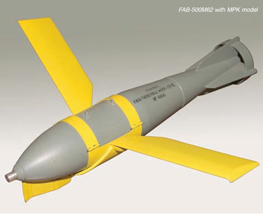 FAB-500 bombs are old Soviet air bombs with explosive charges, adopted in 1954. First models of FAB-500 were created in 1934. Since then, these bombs have undergone numerous modifications. In 1962, a modification of FAB-500 M62 was created, which was designed to be transported on external suspensions. It is this modification that is used with the special module in the war (MPK – modul planirovaniya i korrektsii, ‘planning and correction module’). Information about this module appears in many sources, including Ukrainian analytical and media articles.
