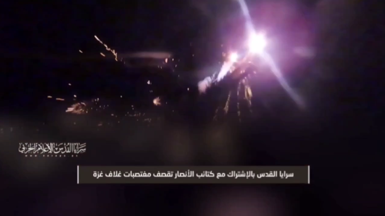 A video published by Hamas military media, showing the Al-Quds Brigades in action, includes text stating: “Al-Quds Brigades, in conjunction with the Ansar Brigades, bombed the outposts around the Gaza Strip.”