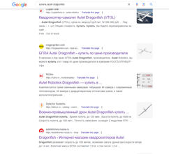 A search in Russian for ‘Autel Dragonfish buy’ yields numerous results, including listings from official distributors of Autel drones in Russia.