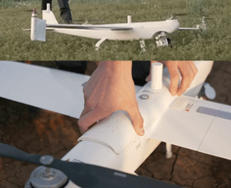 The first presented drone appeared to be an Autel Dragonfish, a reconnaissance VTOL aircraft. The attached camera also seems to be authentic, identified as the DG-T3 model. Pictures confirming this identification were sourced from the official Autel website.