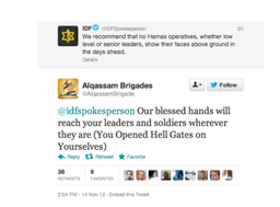 One of the early Hamas-Israel Twitter interactions. Source: The Atlantic