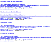 Screenshot of meta data of the videos uploaded to the platform by Hamas in 2008 retrieved with Wayback Machine