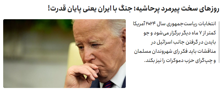 Russian interests and perspectives were frequently highlighted in these discussions. Asriran’s article referenced a RAND Corporation analysis on Russia’s national interests and the potential for a large-scale conflict in the Middle East, describing Iran as one of Russia’s main military allies and a key partner in transporting Russian oil globally via the so-called Iranian ghost fleet. News outlet Fararu posted an article on Russia’s reaction to Israel’s attack on the Iranian consulate calling it “unacceptable“.