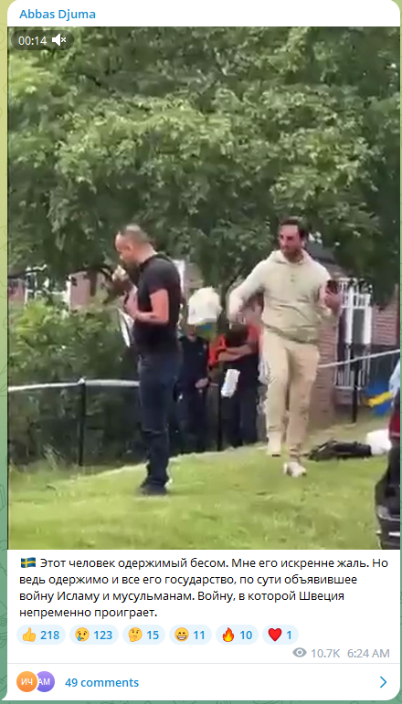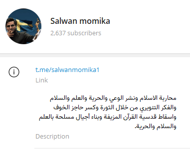 Another significant difference in their actions is the language of their conduct, and hence the audience to which the action is directed. Initially, Paludan produced Islamophobic videos in Swedish, he also used English when the events began to gain international resonance. Momika has a TikTok account, and on August 15, he created a channel in the Telegram app. Both resources are maintained by him mainly in Arabic. The description of his Telegram channel says: “Fighting Islam, spreading awareness, freedom, science, peace, and enlightenment thought revolution, breaking the barrier of fear, overthrowing the false sanctity of the Koran, and building generations armed with science, peace, and freedom.”