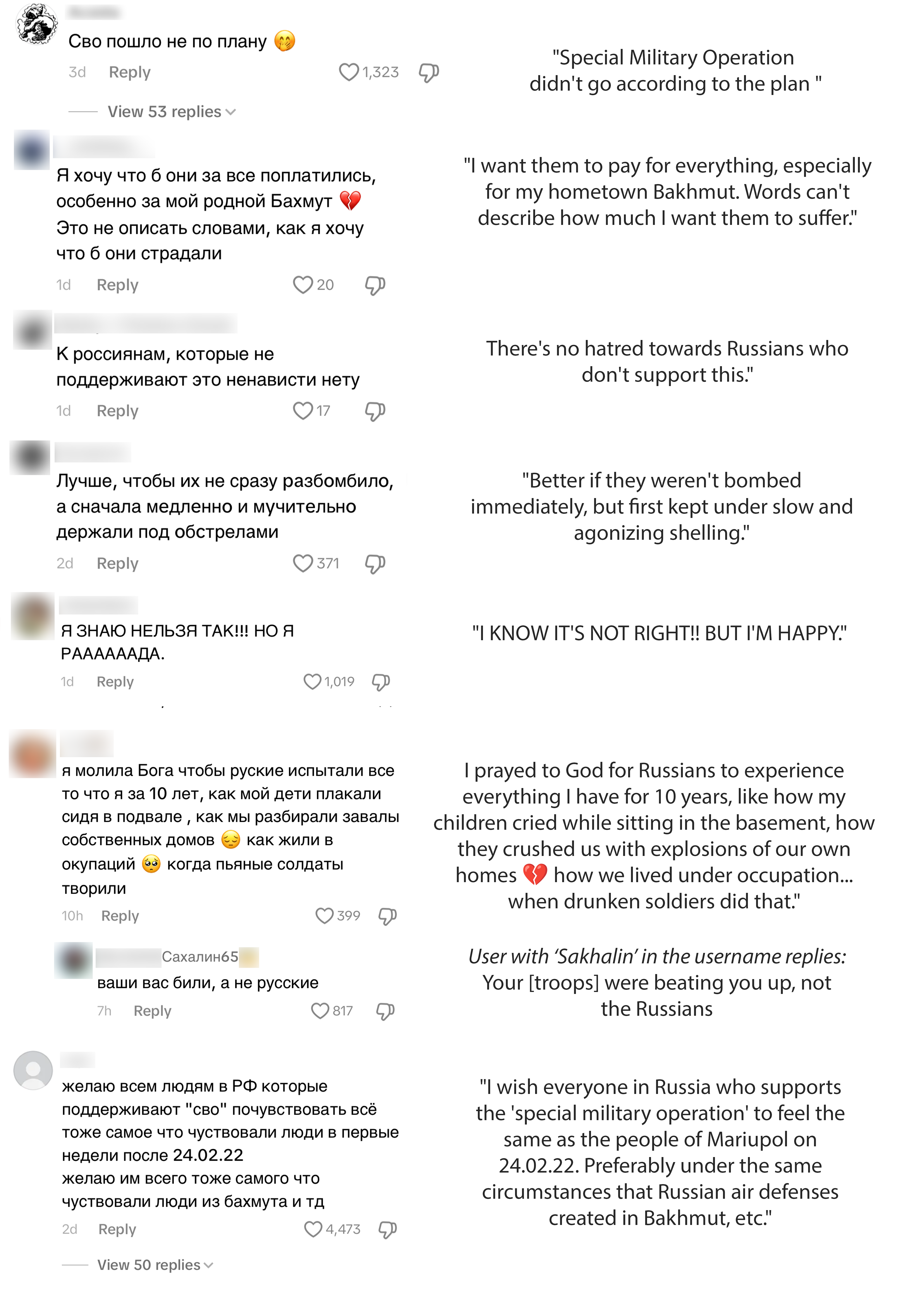 Compilation of comments expressing negative sentiments toward the Russian population in the affected territories.
