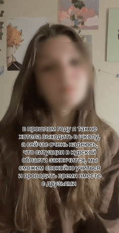 Video uploaded on TikTok with text in Russian: “Last year, I really didn’t want to go to school, but now I really hope that the situation in the Kursk region will end soon, and we will be able to study peacefully and spend time with friends.”