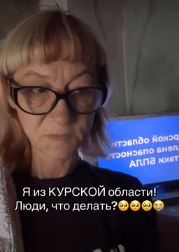 A video was posted on TikTok with a panicked narrative. The text reads: “I’m from the Kursk region, people, what should we do?” In the background, the TV displays a message that says, “A UAV attack warning has been declared in the Kursk region.”