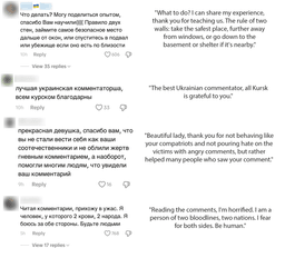 A Ukrainian user responded, expressing that this silence does not lessen the tragedy, nor will it bring back the lives lost. This exchange highlights the raw and unfiltered perceptions between the two nations in war.