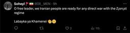 - “Labbayk ya Khamenei (We are at your service, O Khamenei) #LabbaykYaKhamenei”