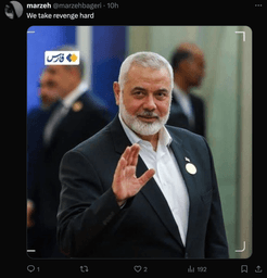 Account in Farsi posted this picture that would translate to “Revenge for Haniyeh”